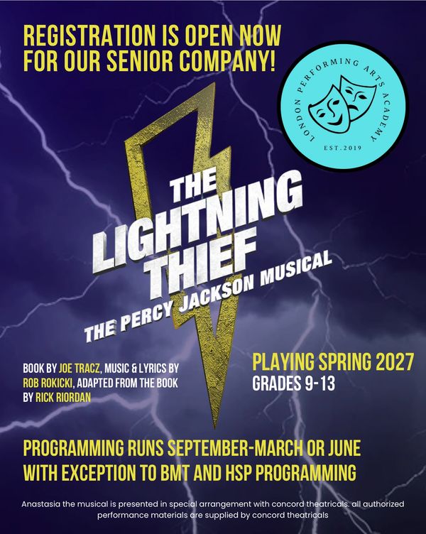 The Lightning Thief and Anastasia the Musical are the 2 main productions, plus we will have a third on stage in March for those who wish to take part.